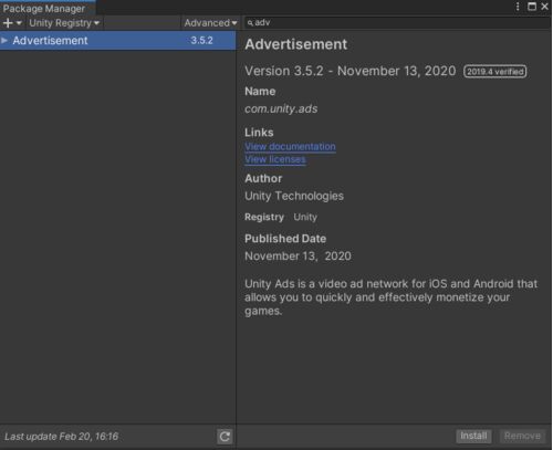 以下のようなエラーが出た場合の解決方法 Library\PackageCache\com.unity.ads@3.5.2\Runtime\Monetization\MonetizationPlatform.cs(33,17): error CS0433: The type 'UnityLifecycleManager' exists in both 'UnityEngine.Advertisements.Editor, Version=…